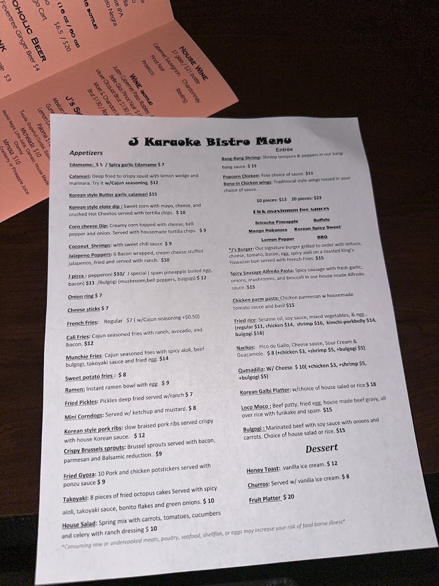 J Karaoke promises a unique night out with friends or family, boasting a selection of private karaoke rooms where you can belt out crowd favorites without feeling self-conscious. Whether you're a seasoned performer or just want to let loose for the evening, the user-friendly sound system is equipped with access to YouTube, allowing you to choose from an endless catalog of songs. Imagine gathering your closest pals, drinks in hand, ready to indulge in the magic of music late into the night—the energy at J Karaoke is contagious!